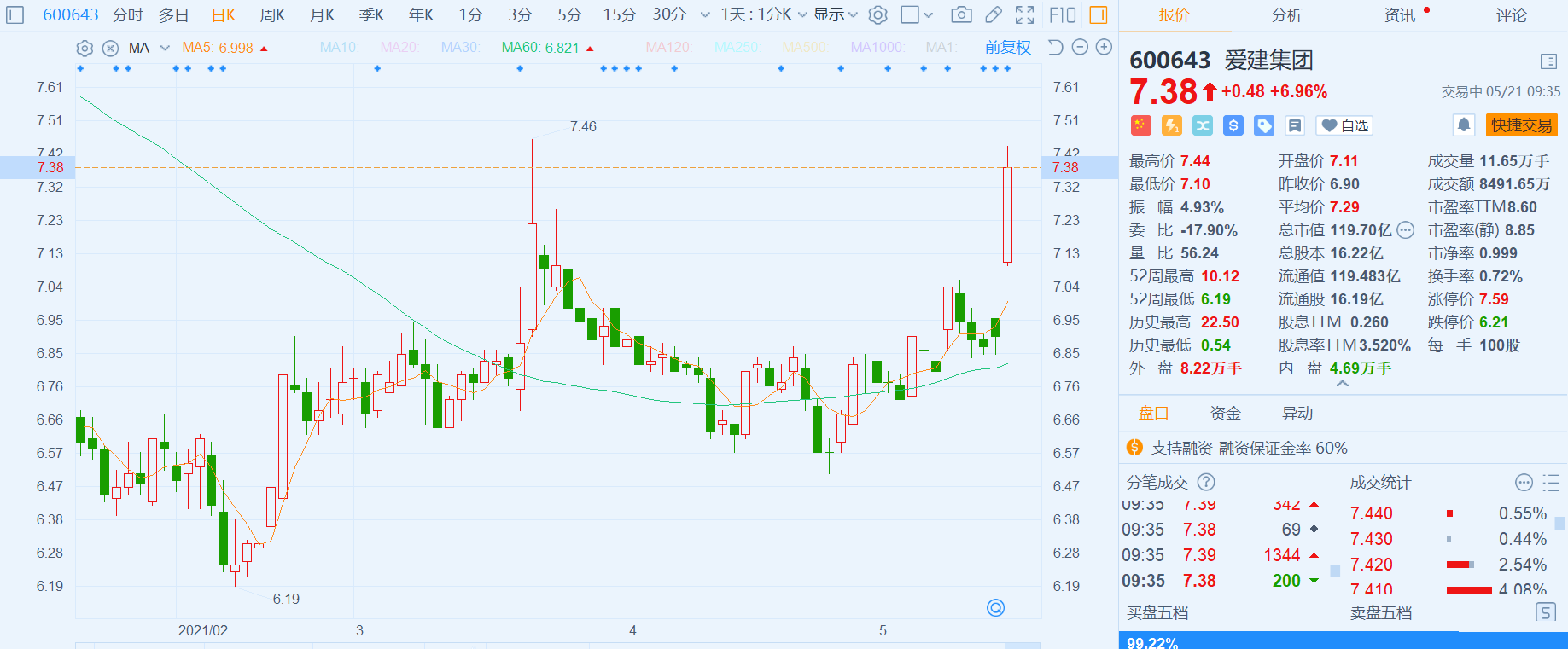 爱建集团(600643.H)大幅高开,现涨幅扩大至近7%,报7.38元创近两个月新高,最新总市值120亿元。 爱建集团公告,公司拟与关联方均瑶航投、吉祥航空等均瑶集团其他下属企业以及长期稳定的具备航空产业协同作用的战略投资者等共同投资上海吉道航航空科技合伙企业,公司与上述关联方共同参与投资合伙企业的
