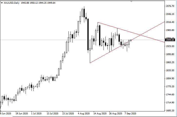 【黄金价格回顾】 周三黄金重新回到三角形区间内运行,多头连续守住前期历史高位1920水平附近支撑后展开走高行情,一度触及1950水平。1976的上轨阻力若能突破,多头有机会重新回到2000关口之上。 【重要基本面分析】 1.剪刀差继续收窄!中国8月CI回落至2.4%I跌幅缩小至2% CI方面,猪肉价格继续对CI同比上涨做出