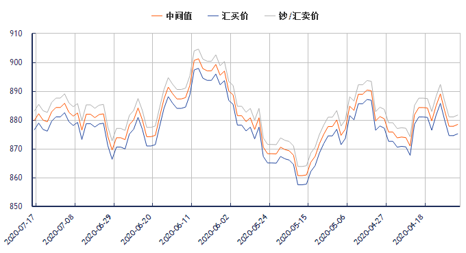 英镑兑换人民币汇率(2020年7月17日) 类别 汇买价 汇卖价 中间价 更新时间 英镑兑换人民币汇率 876.66 883.11