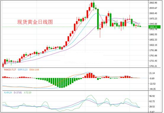 【黄金行情回顾】 1.黄金 周二(9月8日)现货黄金开盘报1929.05美元/盎司,截至发稿,现货黄金暂录得1925.22美元/盎司,跌幅0.16%。 日内,现货黄金窄幅震荡,尽管美元近期回升拖累了金价,市场不排除会出现更大幅度回调的可能性,但持续困扰市场的更长期不确定性支撑金价。从基本面来看,黄金市场目前多空焦灼,料短期