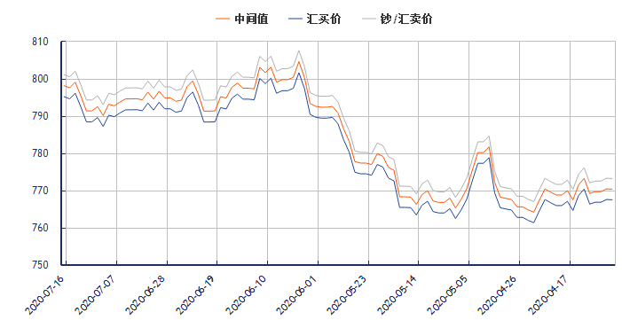 欧元兑换人民币汇率(2020年7月16日) 类别 汇买价 汇卖价 中间价 更新时间 欧元兑换人民币汇率 795.15 801.02