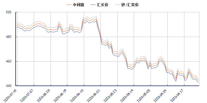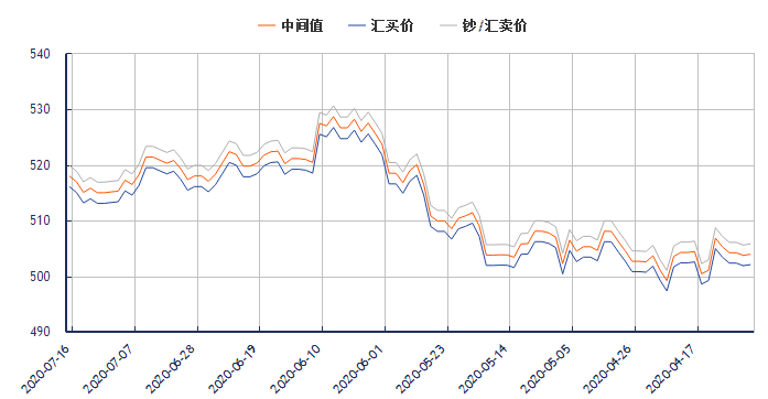 澳元兑换人民币汇率(2020年7月16日) 类别 汇买价 汇卖价 中间价 更新时间 澳元兑换人民币汇率 487.07 490.65