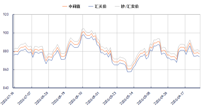 英镑兑换人民币汇率(2020年7月16日) 类别 汇买价 汇卖价 中间价 更新时间 英镑兑换人民币汇率 876.38 882.83