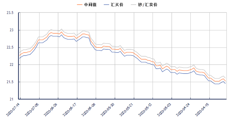 泰铢兑换人民币汇率(2020年7月14日) 类别 汇买价 汇卖价 中间价 更新时间 泰铢兑换人民币汇率 22.17 22.35