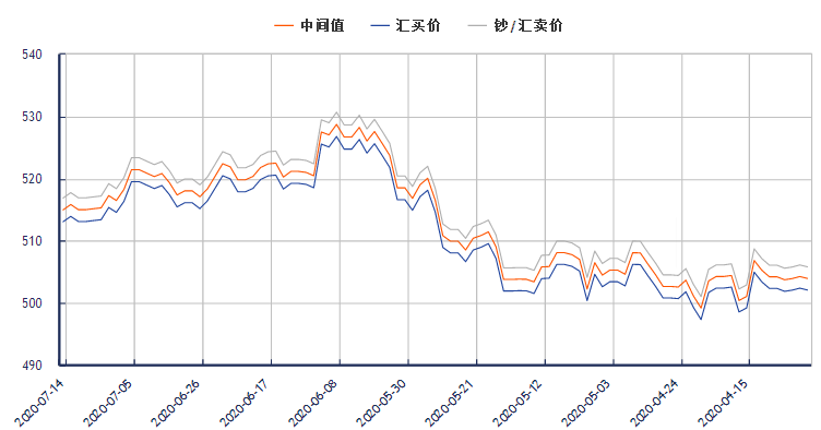 加元兑换人民币汇率(2020年7月14日) 类别 汇买价 汇卖价 中间价 更新时间 加元兑换人民币汇率 512.85 516.63