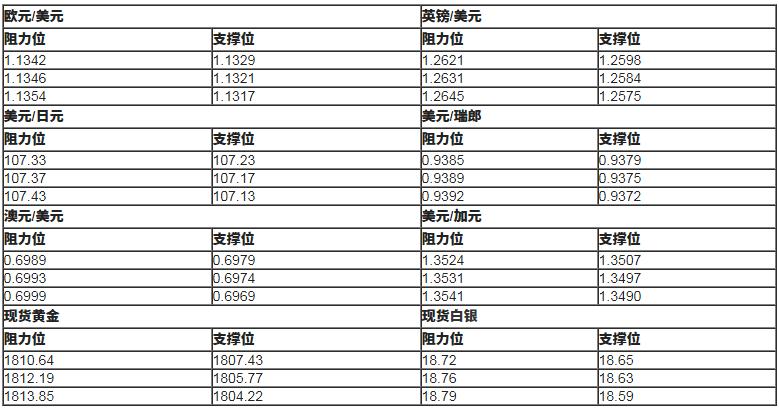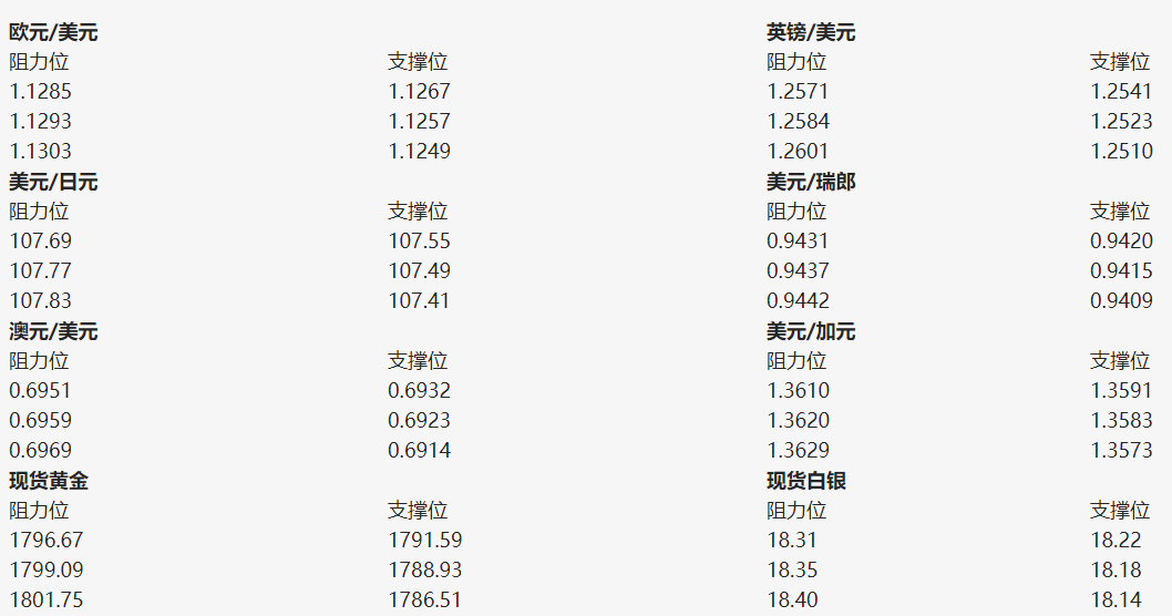本文提供美元指数、欧元、英镑、日元、瑞郎、澳元、加元及黄金支撑阻力位。