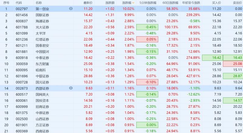 近期,券商整合的消息充斥着市场,今日午盘券商板块又现异动。 北京时间8月13日,券商板块午后异动,第一创业直线拉升,大涨9%,中信建投、中国银河、光大证券、太平洋跟涨。而港股中资券商板块也短线直线拉升,国联证券涨5.34%,海通证券涨1.93%,中信建投证券、广发证券涨1.5%,招商证券涨1.1%。 消息面