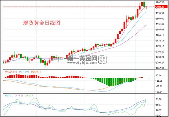基本面看:国际黄金延续上周五跌势,原因有两方面:一是美国非农数据表现靓丽帮助美元反弹,令部分黄金多头获利了结离常上周五公布的非农数据超出预期,黄金遭到一波暴击,自日高一度狂泄60美元至2020美元附近,不过没有跌破关键的2000美元关口。另一方面,此前黄金涨势过快,短期存在大幅回调的空间。