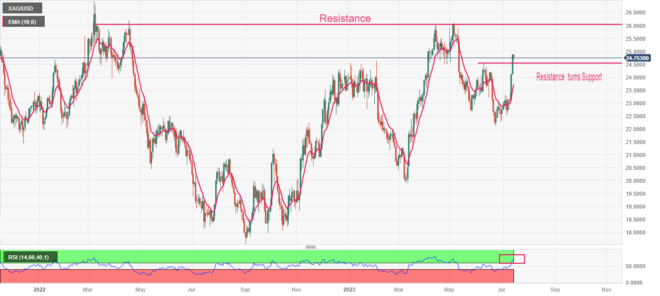 白银在试图抓住伦敦交易日29.00美元的关键阻力时,感受到了抛售压力。随着美元指数(DXY)试图复苏,白金属的上行势头正在减弱,然而,上行偏压仍然完好无损。 随着公司准备公布第二季度收益,标准普尔500指数期货走势起伏不定,市场参与者表现出谨慎。由于美联储(Fd)在去年冬天加息的同时仍保持积极性,预计企业