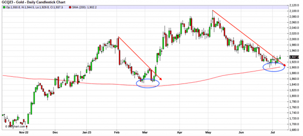 近期黄金一直在1900-1940美元区间盘整。无论空头是否有意在1940附近建立阻力,都无关紧要。重要的是,当前的多空分界非常清晰。如果金价能突破1940并向1960迈进,日线级别上将会出现一个更高的低点,推动金价最终出现更高的高点。 而COX白银也出现类似的触底形态,尽管目前还不太明显。我们看到有两种可能:①白银