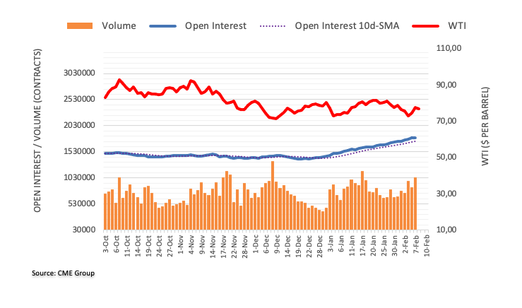 芝加哥商业交易所集团原油期货市场的最新数据显示,周二交易员缩减其未平仓合约0.62万份左右,为1月19日以来首次缩减。另一方面,成交量依然震荡,此次增长约18.35万份合约。 WTI原油:可能再度测试2023年低点 周二WTI原油价格小幅上涨,同时未平仓合约萎缩,表明至少超短期内油价不会继续反弹。油价暂时不应排