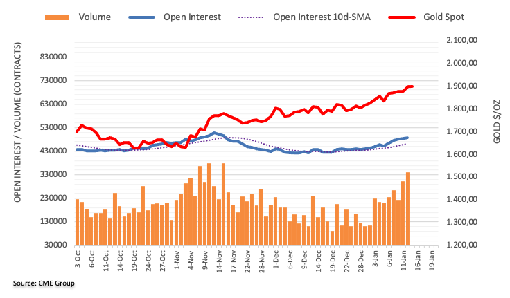 C集团的黄金期货市场初步数据显示,周四未平仓合约连续第五个交易日上升,这次上升了约0.32万份合约。成交量也紧随其后,连续第二个交易日上升,当日上升为3.84万份合约。 黄金继续以2000美元为目标 周四金价在未平仓合约和成交量增加的情况下延续了升势,表明短期内可能出现额外的涨幅。虽然如此,黄色金属