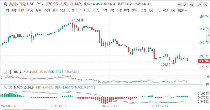 日元是去年整体表现最差的主要货币之一。加拿大丰业银行(cotiaak)经济学家预测,到2023年底,美元/日元将达到130。 跌破129.50可能打开跌向121.45的大门 我们对美元/日元的预测与目前彭博社对2023年的共识估计一致(第四季度为130),我们预计展开的趋势反映了我们对美元兑日元主要货币同行的更广泛前景。换