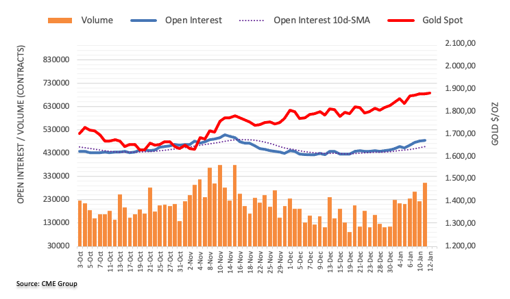 根据芝加哥商业交易所集团初步数据,周三黄金期货市场未平仓合约连续第四日增长,此次增长约0.41万份。成交量增长约7.72万份合约,结束周三回调重启增势。 金价似乎在2000美元下方盘整 周三金价震荡之际未平仓合约和成交量齐增,支持金价在超短期内再度陷入区间整理。与此同时,黄金多头重要目标依然是2000美元