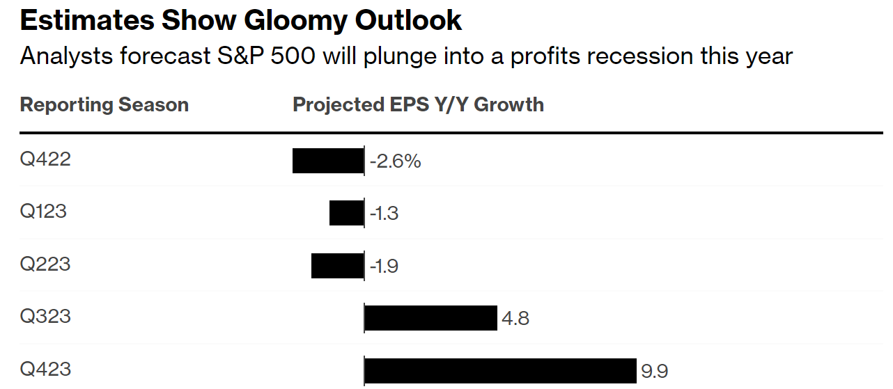 彭博的分析文章指出,对美股多头而言,今年开局并不好,对需求放缓的担忧导致主要股指在首日交易中走低。股市上一次出现如此糟糕的开局是在2021年1月,当时标普500下跌1.5%。 距离第四季度财报季正式开始还有不到两周的时间,市场的不安情绪显而易见,增长预期已被下调。彭博情报(loorgItlligc)估计,
