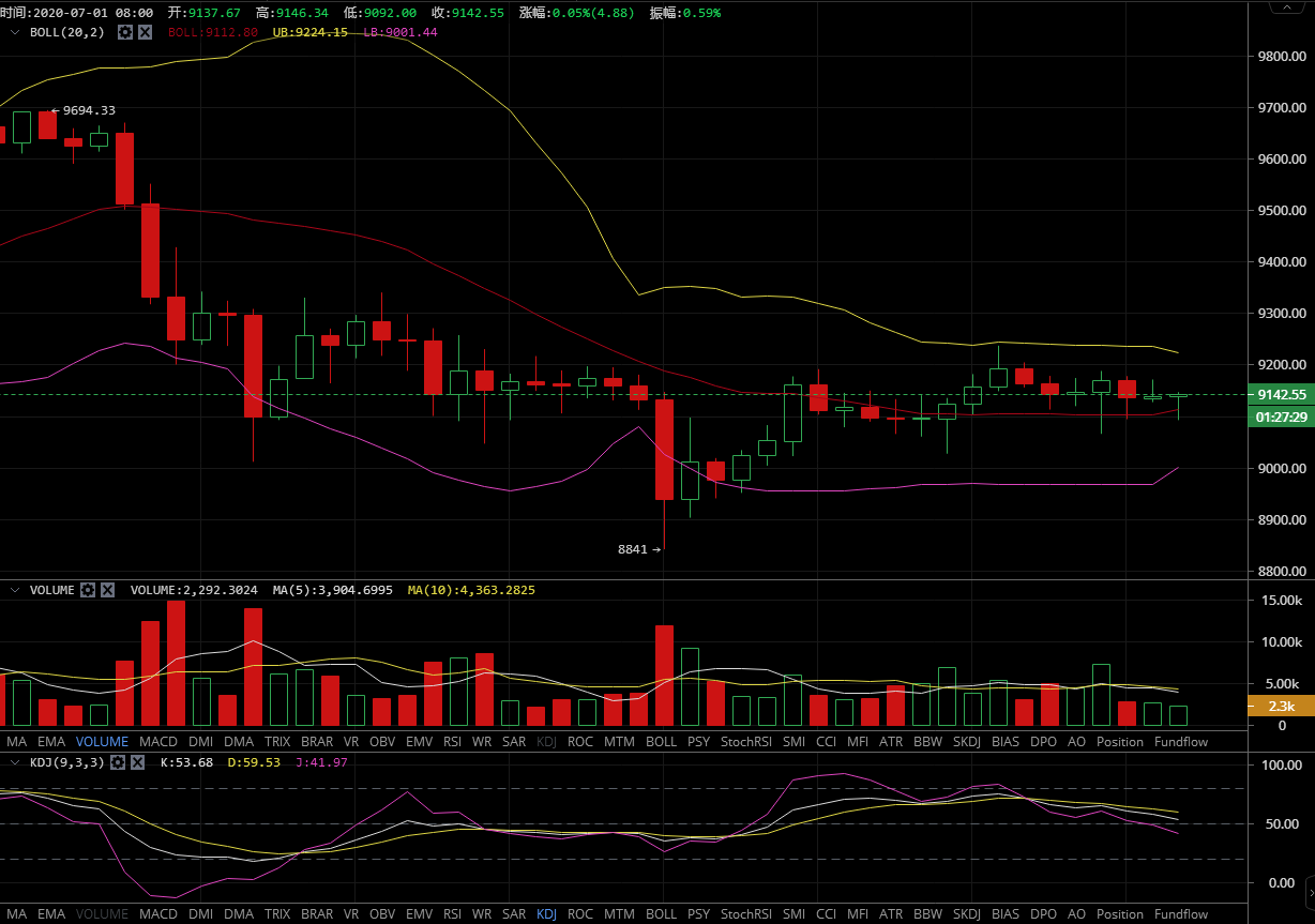 记住成为赢利的合约交易者是一个旅程,而非目的地。世界上并不存在只赢不输的交易者。试着每天交易的更好一些,从自己的进步中得到乐趣。聚精会神学习技术分析的技艺,提高自己的交易技巧,而不是仅仅把注意力放在自己交易输赢多少上。 比特币凌晨再现跳水行情,从9050附近跌至8909反弹,触及9100美金回