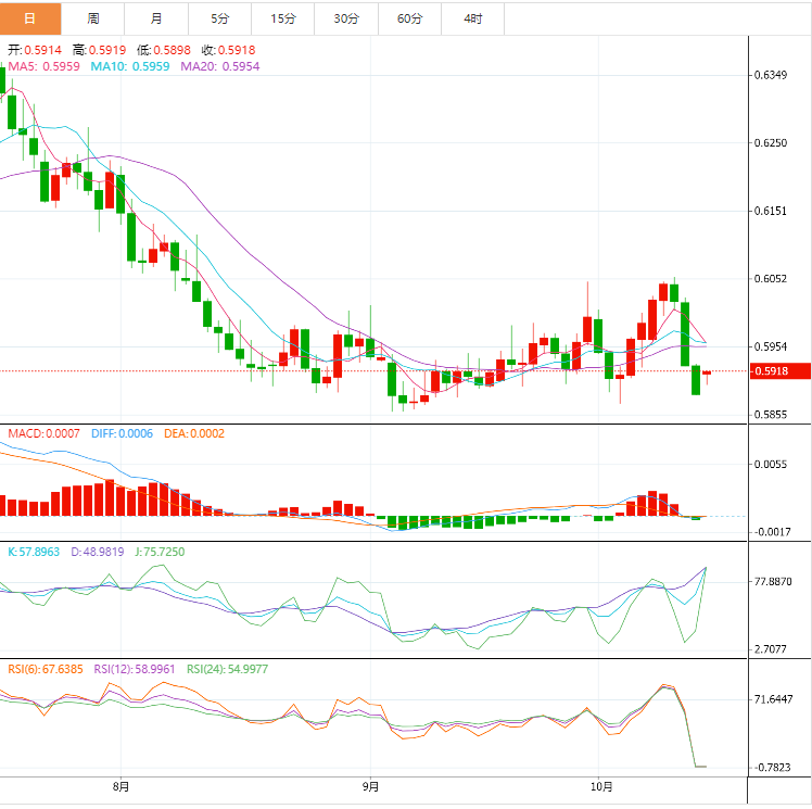 周一亚洲时段,纽元兑美元吸引了一些买盘。截止目前,纽元兑美元上涨至0.5919,涨幅0.56%。 今日关注,等待周一晚些时候公布的新西兰消费者价格指数(CI)数据。第三季度(Q3)的季度和年度通胀数据预计将分别上升2.0%和5.9%。纽元兑美元货币对目前在0.5909附近交易,当日上涨0.35%。 纽元兑美元基本面综述 周一公