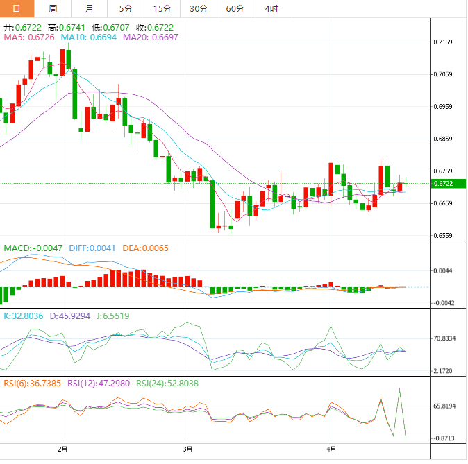 周三盘中,澳元兑美元下跌至0.6722,跌幅0.01%。 澳元基本面:澳元/美元上涨至0.6730附近盘,涨幅温和。即便如此,澳元对仍难以延续前日反弹势头,理由是市场低迷,影响市场情绪且美联储鹰派谈话与美国经济数据和澳洲经济数据强劲形成反差。尽管如此,澳大利亚3月西太平洋领先指数升至-0.01%,而前值-0.06%,这也证明