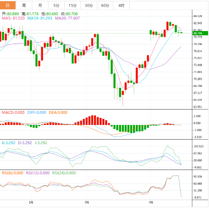 周三盘中,原油价格为808.6亿美元,较昨日下跌约2%。WTI原油周二走高,从81.8亿美元的低点上涨至830.8亿美元/桶。 尽管如此,在中国公布第一季度国内生产总值增长4.5%和美元走软的背景下,油价隔夜上涨,美元进入了看跌修正。 然而,在太平洋彼岸和更广泛的亚洲国家,需求担忧持续存在,由于对通胀和迫在眉睫的经