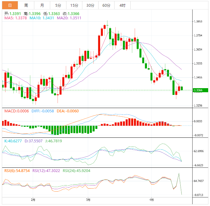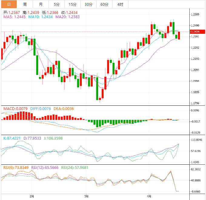 周二盘中,英镑兑美元上涨至1.2435,涨幅0.47%。 英镑基本面,由于英国国家统计局(O)公佈的2月平均收入数据乐观,英镑/美元已攀升至1.2400以上。三个月的劳动力成本指数(不包括奖金)达到了6.6%,高于共识的6.2%,但和前值一致。申请失业救济金的人数猛增了2.82万,而市场预期为减少1.18万。三个月的失业率已经