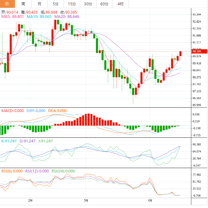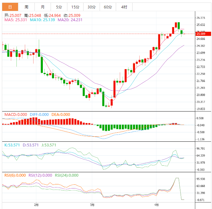 黄金价格走势综述 周二亚洲时段,现货黄金窄幅震荡,目前交投于1998.81美元/盎司附近,隔夜金价震荡走弱,一度跌至逾一周低点1981.07美元/盎司附近,尾盘收报1994.97美元/盎司,勉强守在21日均线1989.15上方,因为纽约联储4月制造业指数强劲反弹,美国4月独栋住宅建筑商信心连续第四个月改善,市场基本咬定美联储将在
