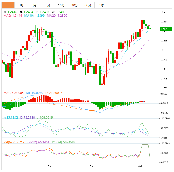 对英镑/美元来说,今天是平静的一天。英国股市因耶稣受难日休市,没有可供投资者考虑的英国经济指标。 数据的缺乏将会影响人们对美国就业报告的看法。本周疲软的劳动力市场数据表明美国失业率上升,有利于英镑/美元。 英国经济已被证明更具弹性,支持英镑/美元回归1.25美元。然而,在今日美国就业报告发布之前,英
