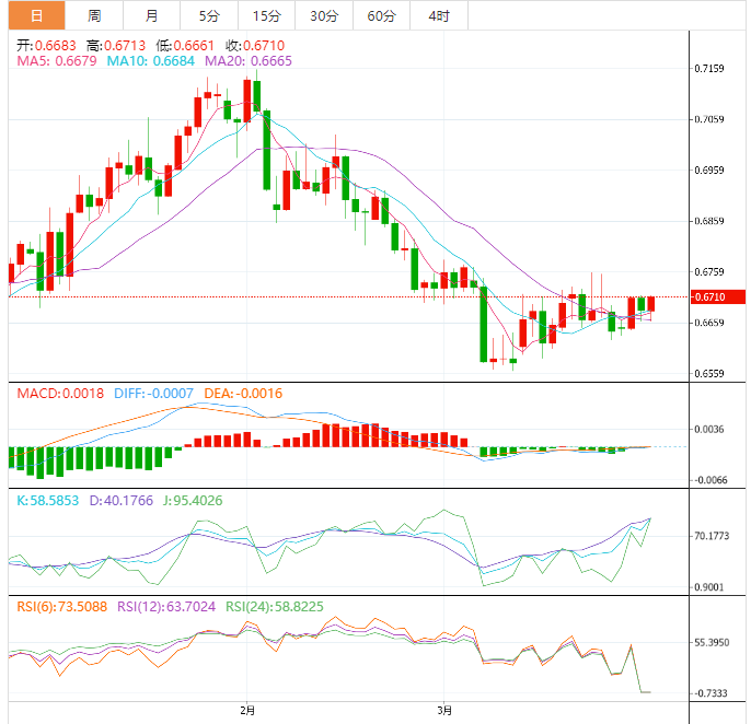 周四盘中,澳元兑美元上涨至0.6711,涨幅0.37%。 澳元基本面:澳大利亚国民银行(A)在目睹了最近通胀和零售销售数据的下降后,将其对澳大利亚央行峰值利率的预测从4.15%降至3.85%。A还预计,4月份将加息0.25%。值得注意的是,西太平洋银行、澳大利亚联邦银行(CA)和澳大利亚和新西兰银行集团(AZ)都预计,在
