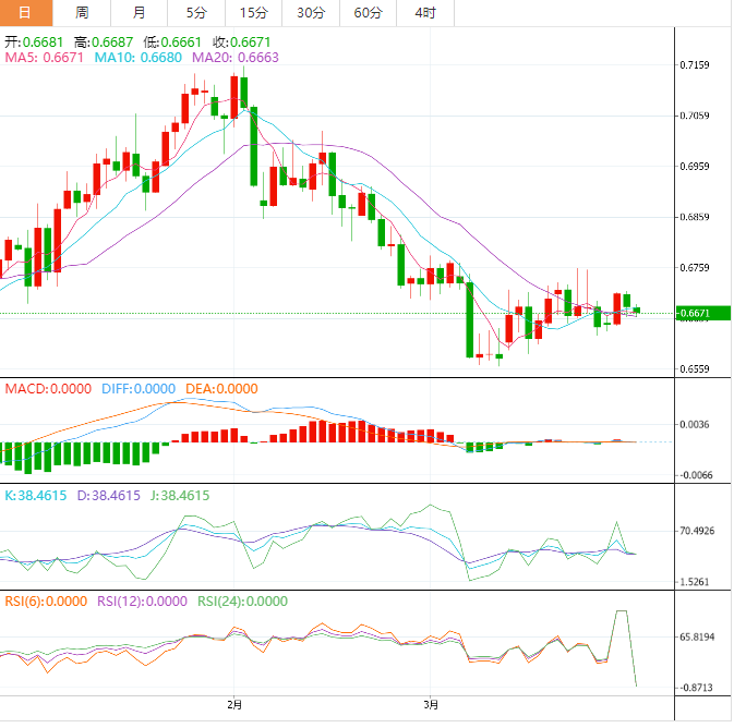 澳元兑美元证明其风险晴雨表的地位是合理的,周四开盘后,澳元兑美元在0.6680附近摇摆不定,收盘下跌。也就是说,澳元对此前的下跌可能与美元反弹和澳大利亚通胀数据低迷有关,而最新的不作为可能是由于缺乏主要催化剂,以及对通胀和银行业的混合担忧。 澳元/美元汇率走势基本面解读 周三,澳大利亚2月份消费者价