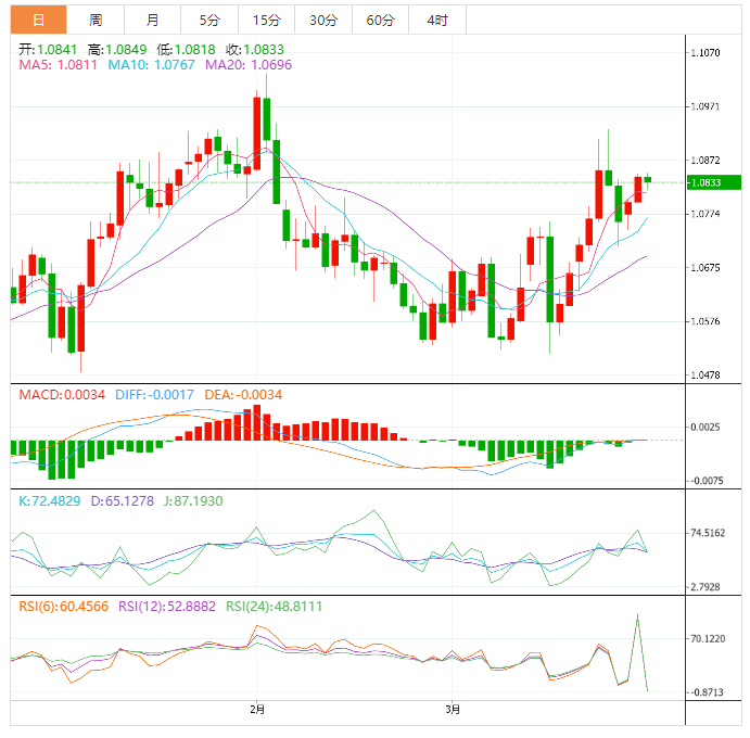周三欧市盘前,欧元兑美元已经向北延伸至临界阻力位1.0850附近。缺乏耗尽信号表明,主要货币对正在积聚力量,以增加更多的收益。在美国银行业紧张情绪缓解后,市场情绪改善,对美联储(Fd)稳定货币政策的预期上升,导致欧元对强劲反弹。 标普500指数期货周二继续震荡,因缺乏潜在触发因素,市场情绪平静。美元指