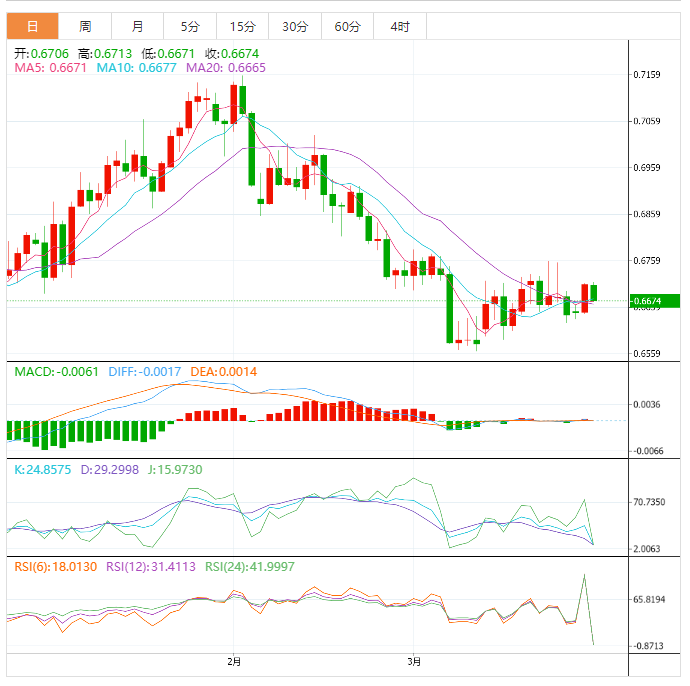 周三盘中,澳元兑美元下跌至0.6675,跌幅0.52%。 澳元基本面:澳元/美元难以利用前一天的积极走势,并在周三面临一些新的销售压力。日内的稳定下跌一直延续到欧洲早盘,并在最后一小时将现货价格拖至新的日低,即0.6675-0.6670区域附近。疲软的澳大利亚2月通胀率数据确认澳洲联储将在4月会议上暂停加息的押注,引发澳