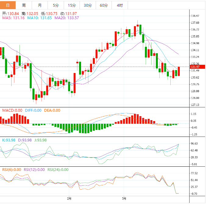 周三盘中,美元兑日元上涨至131.97,涨幅0.89%。 基本面上,美元/日元在周高点131.75附近徘徊。在对日本央行(oJ)继续实行超宽鬆货币政策的担忧再度升温的情况下,该资产有望向132.00扩大升势。过去几个月,日元吸引了看涨押注,因为人们希望在新的日本央行领导层上任后,日本央行将退出其长达十年的扩张性政策。然而
