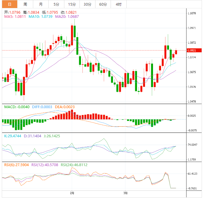 周二盘中,欧元兑美元上涨至1.0821,涨幅0.24%。 欧元基本面:欧洲央行政策制定者们试图说服市场缓解欧元区衰退的担忧,并希望克服银行业危机。然而,值得注意的是,在最新的评论中,美联储政策制定者似乎没有欧洲央行的同行那么强硬,因此允许欧元/美元多头进一步上涨。此外,周一悲观的美国达拉斯联储3月制造业指数