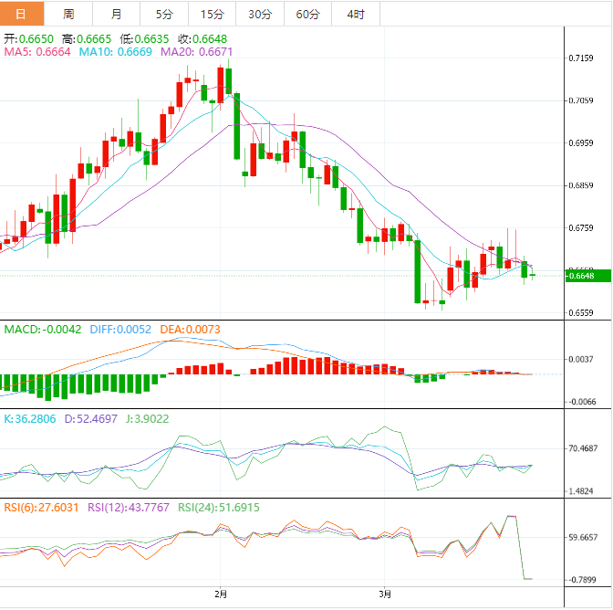 周一盘中,澳元兑美元上涨至0.6649,涨幅0.06%。 澳元基本面:澳元兑美元在经历了动荡的一周后,在周一的低迷交易时段,买家努力保持在0.6650附近。在此过程中,澳元兑美元收复了本周的失地,但缺乏反弹动能,无法延续上周五尾盘从一周低点的修正反弹。 澳元技术面:澳元兑美元成功突破了0.6665,并以低于该水平的