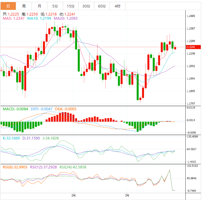 周一盘中,英镑兑美元上涨至1.2242,涨幅0.09%。 英镑基本面:英镑/美元跌去早盘涨幅,回落至1.2230附近。美元指数逐步整理后出现反弹,英镑/美元继未能攀升突破1.2250直接阻力后出现下跌。由于美国政府承诺向中型银行提供更多金融支持,为市场参与者注入了信心,美元指数试图自103.00反弹。彭博社报导称,美国当局正