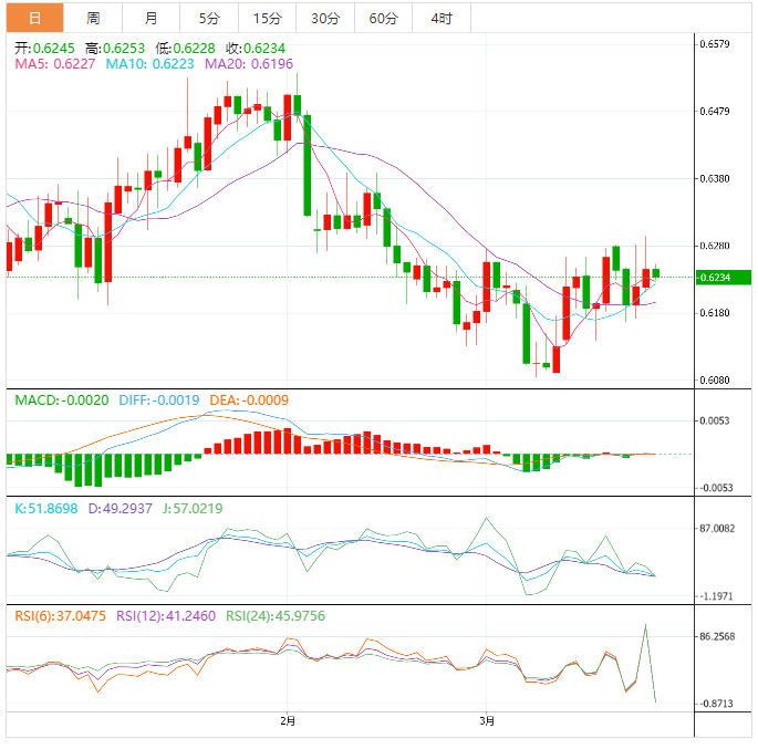 周五盘中,纽元兑美元下跌至0.6236,跌幅0.18%。 基本面上,由于市场人气摇摆不定,纽元兑美元收窄盘中跌势至0.6240附近,录得三日内首日下跌。美国财政部长珍妮特-耶伦和巴塞尔银行监管委员会主席的评论,描绘了市场对银行业崩溃的担忧,也对市场情绪造成了压力,并对纽元/美元多头构成挑战。然而,最近收益率的回落