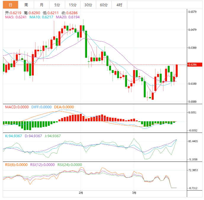 周四盘中,纽元兑美元上涨至0.6288,涨幅1.08%。 基本面上,纽元/美元延续反弹走势,上涨至0.6250附近。由于美元指数在跌至102.00附近后出现短暂回调,纽元/美元自0.6220稳固反弹。美元指数徘徊在六个月低点附近,随著美联储接近终端利率,预计美元将延续下行势头。 技术面上,纽元兑美元昨天明显反弹,突破了0.62