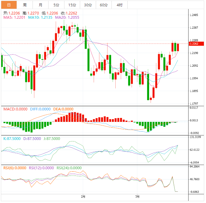 周三盘中,英镑兑美元上涨至1.2265,涨幅0.48%。 英镑基本面:英镑/美元在前一天从2月2日以来的最高水平回撤后重新获得积极的牵引力,并在周三欧洲早盘时段继续上扬。在英国消费者通胀数据公佈后,买盘兴趣加快步伐,推动英镑/美元创下日内新高,在最后一小时内突破1.2250水平。英国国家统计局(O)报告称,2月份总体