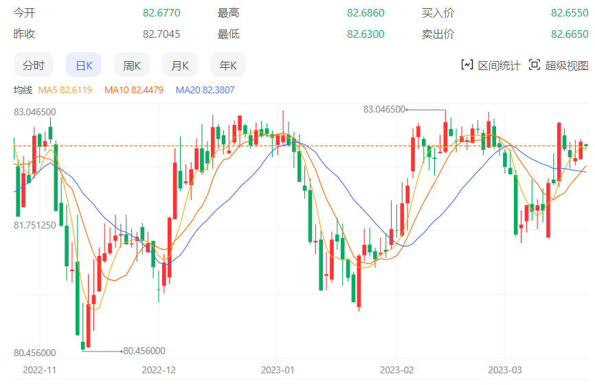 周三欧市盘前,美元/印度卢比在82.60附近来回波动。在周二美元指数观察到横向线索后,汇价表现平平。由于投资者关注美国联邦储备委员会(Fd)宣布的货币政策,预计该指数将继续在窄幅区间内盘整。 标普500指数期货在连涨两日后看起来平静,因对美国银行业进一步动荡的担忧已开始消退,反映出市场参与者的风险偏好