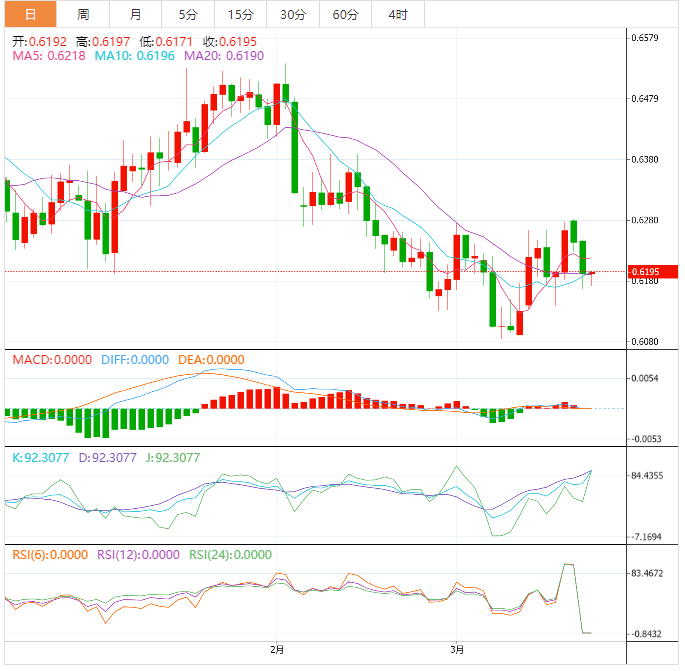 周三亚洲时段,纽元兑美元从0.6170开始稳步回升。周二,由于对新西兰经济增长乏力的担忧再度出现,新西兰元仍处于弱势。 大华银行(UO)分析师指出,“今年早些时候的恶劣天气和洪水的影响将给经济前景蒙上阴影。我们的观点是,未来经济可能会进一步疲软。我们已将2023年的GD增长预期从之前的1.5%下调至1.3%。”