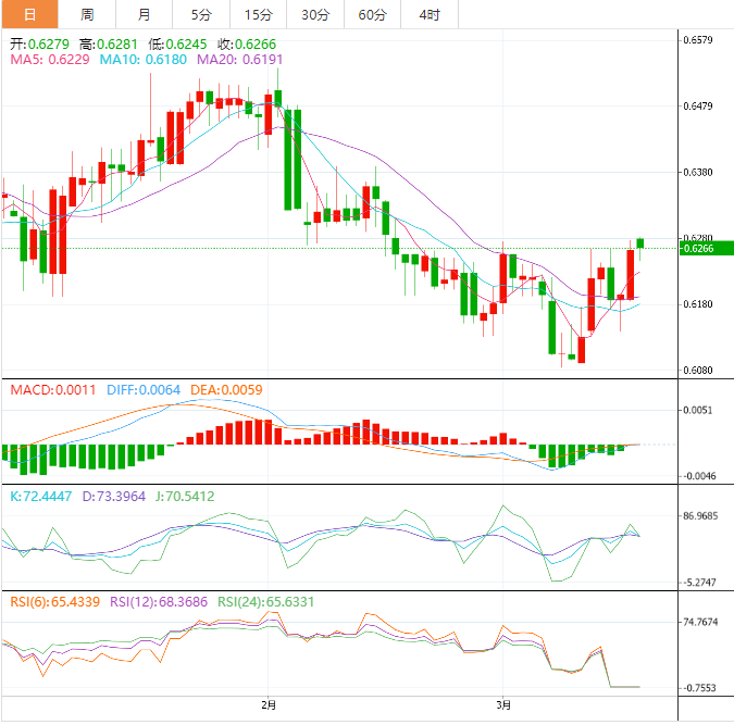 周一亚洲交易时段早盘,纽元兑美元在突破当前阻力位0.6280上行时面临障碍。由于投资者正在等待中国人民银行(oC)公布利率决定,以采取进一步行动,预计新西兰元资产将继续处于紧张状态。 为了帮助中国经济复苏,中国央行可能在利率上保持鸽派立常大华银行(UOGrou)经济学家建议,中国央行可能在3月20日的下次