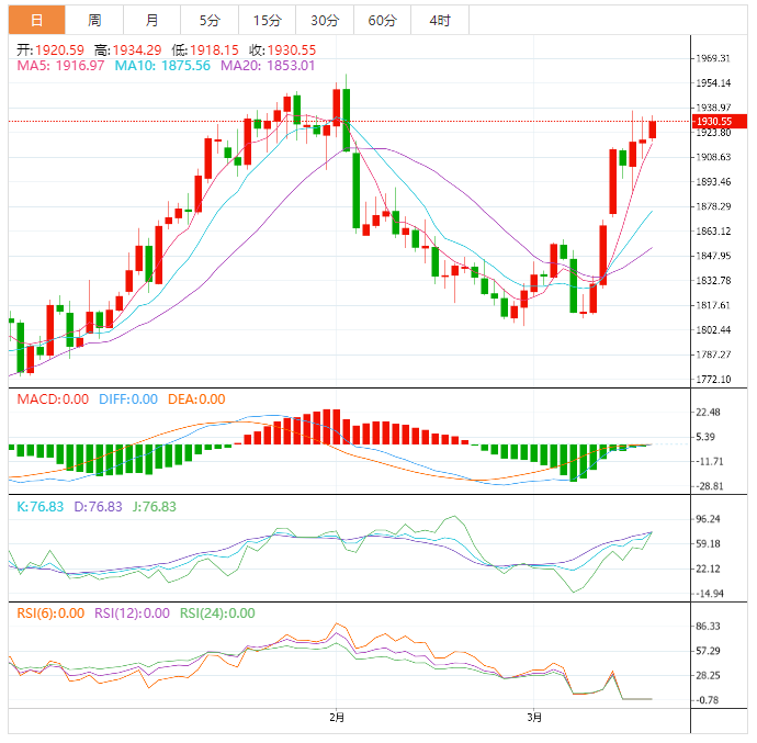 周五盘中,现货黄金震荡上涨,目前交投于1931.75美元/盎司附近,虽然美元指数小幅回落,给金价提供上涨动能。不过,美国大型银行向第一共和银行注资300亿美元,以拯救被卷入近日金融风暴的第一共和银行,瑞士央行也向瑞士信贷抛出了540亿美元的救命资助,市场对欧美银行业危机的担忧情绪已经有所降温,全球股市普遍上涨