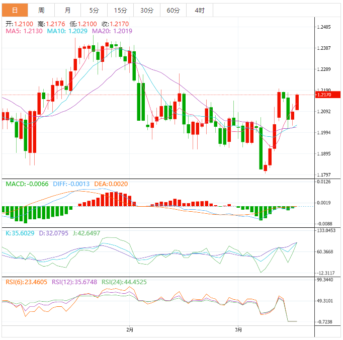 周五盘中,英镑兑美元上涨至1.2171,涨幅0.65%。 英镑基本面:英镑/美元温和上涨于1.2150附近。在这样的情况下,由于美元疲弱且风险催化剂积极,英镑/美元连续两日走强。然而,应该指出的是,下周英格兰银行和美联储(Fd)的关键货币政策会议之前,以及英国脱欧协议最终投票之前,市场谨慎情绪将阻止多头。英国脱欧僵