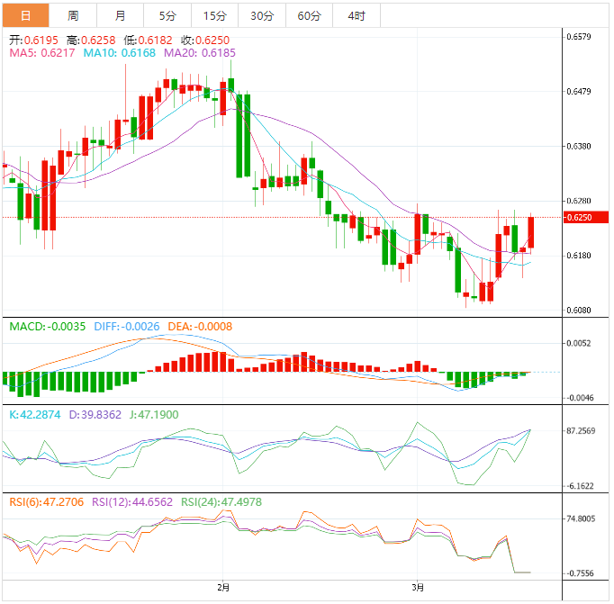 周五盘中,纽元兑美元上涨至0.6253,涨幅0.90%。 基本面上,美元走软以及积极的风险偏好提振纽元兑美元走高。风险代理货币纽元兑美元反映了在快速乾预银行危机的带动下,出现了缓解的反弹。在撰写本报告时,该货币对上涨约0.68%。亚洲股市普涨,美债收益率持稳。美国财政部长耶伦早些时候的一些评论指出,25万美元的