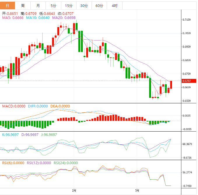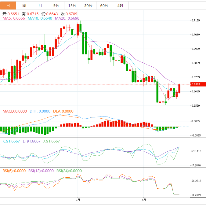 周五,澳元兑美元在东京市场反弹,从0.6660上升至0.6691的新高。下周美联储会议即将召开,市场紧张不安。隔夜,欧洲央行提高了利率,引发了对欧元的下意识抛售,后来反弹并继续顶住阻力。 围绕着银行业危机,市场动荡不安,但周五的市场也有风险的暗示,周四全球股市上涨,因为有消息称,一大批银行正在向美国第