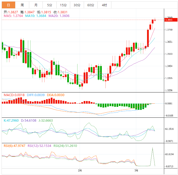 周五盘中,美元兑加元上涨至1.3832,涨幅0.02%。 加元基本面:加元货币对买盘努力为前一天突破一个重要的水平阻力区域而欢呼,该阻力区域包括自2022年9月下旬以来出现的多个顶部。原因可能与超买的相对强弱指数(RI)(14),以及美国和加拿大2月份关键就业报告之前的谨慎情绪有关。 加元技术面:在昨天短暂下跌之后