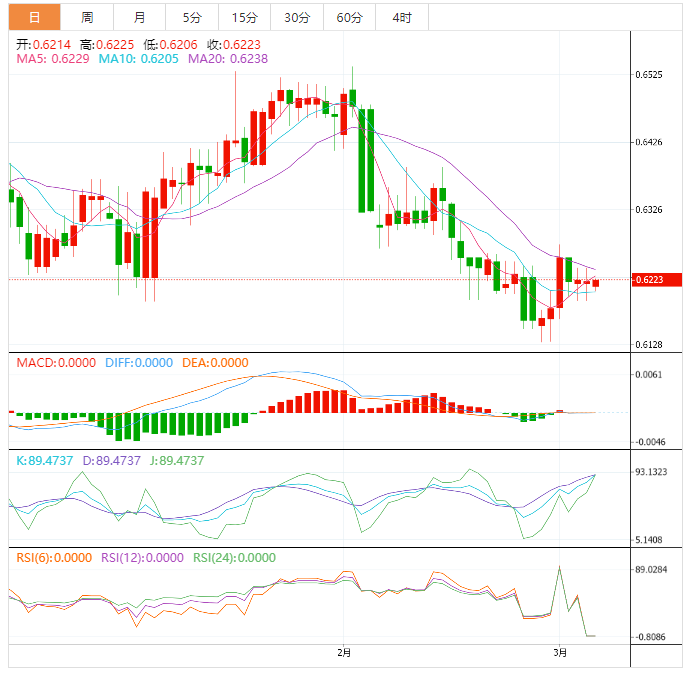 纽元兑美元回落至0.6210,此前该货币对在周一早些时候出现了五年来的首次周上涨,因为市场情绪挑战了纽元兑美元的买家。在美联储主席杰罗姆·鲍威尔半年度证词和美国2月份就业报告之前,市场的谨慎情绪为这句话提供了线索。 在其他方面,最近低迷的美国数据以及美国国债收益率从多年高点回落,使得纽元/美元买家在五