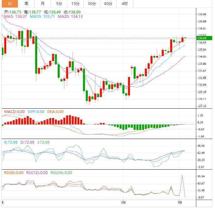 美元兑日元在亚洲交易时段跌至136.50附近后,出现了买入兴趣。随着日本统计局传达出2月份东京消费者价格指数(CI)大幅走软,美元兑日元开始走强。 年度整体CI已从普遍预期的4.1%和此前公布的4.4%降至3.4%。与此相反,排除能源和食品价格影响的核心CI从预期的3.1%改善至3.2%,之前释放的3.0%。最近食品和能源价
