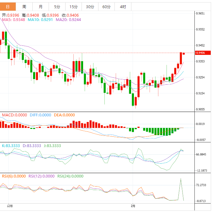 周一亚洲早盘温和回调后,美元兑瑞郎收复了一轮阻力位0.9400。在美国公布消费者支出增幅高于预期后,瑞郎资产周五受到热烈追捧。受工资指数上涨的推动,美国1月份个人消费支出(C)跃升0.6%,这让美国家庭高兴地持有更多资金用于处置。 随着美国联邦储备委员会(Fd)极有可能考虑提高利率,消费者支出的复苏再次