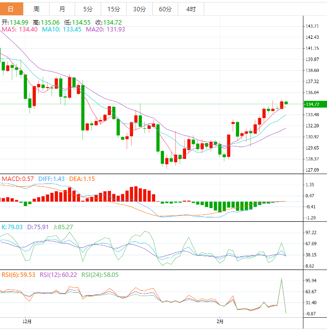 周三盘中,美元兑日元下跌至134.72,跌幅0.22%。 基本面上,日本央行董事会成员田村直树(aokiTaura)周三在一次按照计划举行的活动上发表讲话,指出“日本消费者通胀可能会在新财年下半年放缓增速。”目前,必须谨慎、谦虚地看待市场将如何稳定,市场功能将改善到何种程度。去年12月扩大债券收益率曲线控制区间的目