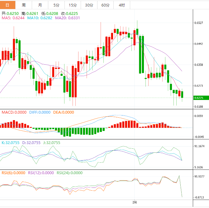 周二盘中,纽元/美元跌破0.6240。由于在经历长周末的美国市场开盘之前,投资者的焦虑情绪上升,预计该货币对将继续下跌。 基本面上,投资者的全部注意力仍将集中在周三公佈的纽储行2月利率决议上。该决议极为重要,因为新西兰总理()克里斯-希普金斯(ChriHiki)已经承诺了提供3亿新西兰元(1.8708亿美元)的